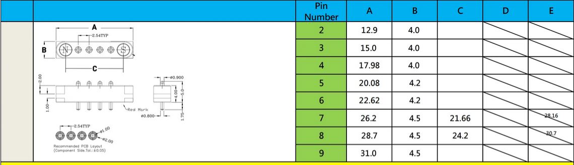 Brand Name RTLECS Voltage: 36 V Certification: RoHS Product Family: Magnet Spring-Loaded connector Pogo Pin Maximum Current: 2A Mount Type:Through Hole Solder Mount Body/Plunger Material: Co upper Alloy Plating: Gold over Nickel Pitch: 0.100"/2.54mm